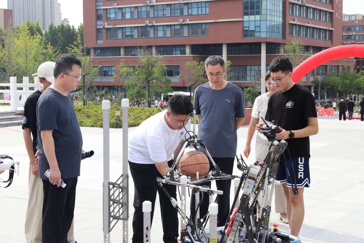 科创展示,启迪专业梦想。迎新现场特设科创作品互动展区,国家一等奖获奖作品,机器人战队成员自主设计的投篮机器人现场演示精准投篮技术,吸引众多新生及家长驻足观看和现场操作;车辆专业学生暑期精心设计赛车文创模型并进行3D打印,更联合非遗传承人薛娜老师创作赛车主题剪纸作品,将现代科技与传统文化创新融合,并为恰逢生日的新生送上这份特殊的礼物,为他们举办了一场难忘的“成人礼”;大学生方程式赛车队员将参赛赛车与实况模拟器带入校园,让新生沉浸式体验速度与激情;科创历程墙以时间轴形式展示历届学生从慧鱼模型到实物的进阶之路。