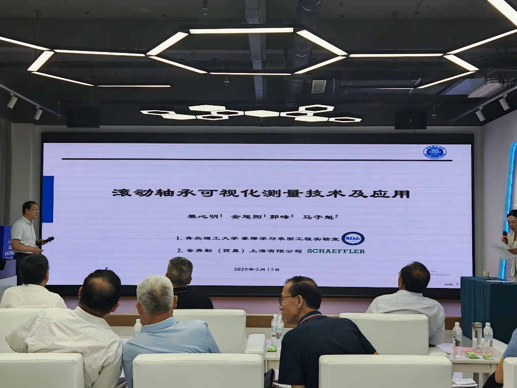 hth华体育官网hth华体育官网栗心明教授、江京亮副教授及金旭阳老师应邀参会。会上,栗心明受大会组委会邀请作了题为《滚动轴承的可视化测量技术及应用》的专题学术报告。报告从滚动轴承在高端装备、轨道交通、风力发电、精密机床等关键领域中的应用切入,深入剖析了润滑成膜机制及轴承组件摩擦学问题等核心科学与工程难题,系统介绍了可视化测量技术的发展历程、测试原理与关键技术难点,引发了与会企业的广泛关注。