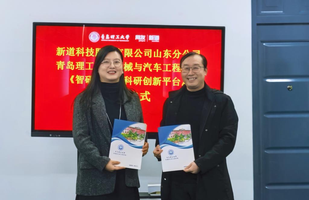 2025年12月15日,新道科技股份有限公司山东分公司(以下简称新道科技公司)向hth华体育官网捐赠“智研—数智科研创新平台(DBE Cloud)”的仪式在黄岛校区汽车实验楼408会议室隆重举行。新道科技股份有限公司山东分公司青岛业务部总经理高文、项目经理王旭鹏,hth华体育官网党委书记李忠晓,党委副书记、副院长董虎,副院长栗心明及教师代表出席会议,董虎主持捐赠仪式。
