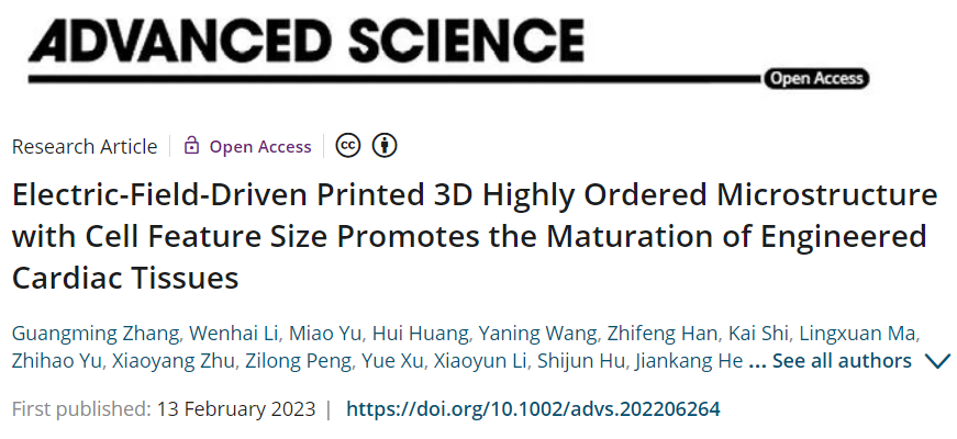 近日,hth华体育官网山东省增材制造工程技术研究中心联合苏州大学心血管病研究所、西安交通大学、青岛大学附属医院等多家单位,在电场驱动喷射微3D打印组织工程支架方面取得重要进展,相关研究成果以“Electric-Field-Driven Printed 3D Highly Ordered Microstructure with Cell Feature Size Promotes the Maturation of Engineered Cardiac Tissues”为题,发表在国际高水平期刊《Advanced Science》(中科院大类一区, IF 17.521)。hth华体育官网张广明副教授和李汶海硕士为论文共同第一作者,兰红波教授为通讯作者,hth华体育官网为第一署名通讯单位。该成果具有典型的“医工结合”特色,也是hth华体育官网首次在该领域发表成果。
